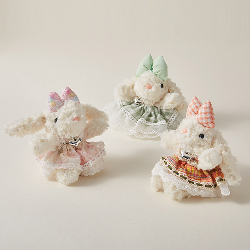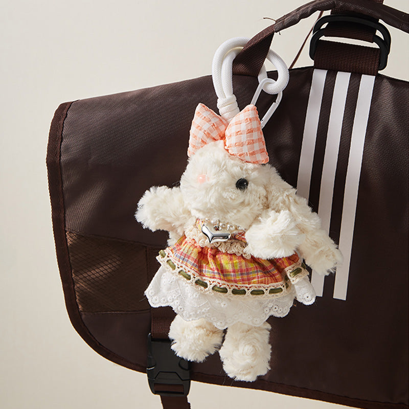 Dressed in a charming checkered bow and a sweet lace-trimmed dress. Its soft, fluffy texture brings comfort, while the intricate details in the outfit add a touch of vintage flair. This lovely plush friend is perfect for those who appreciate a blend of cuteness and style, making it a delightful companion for everyday adventures.