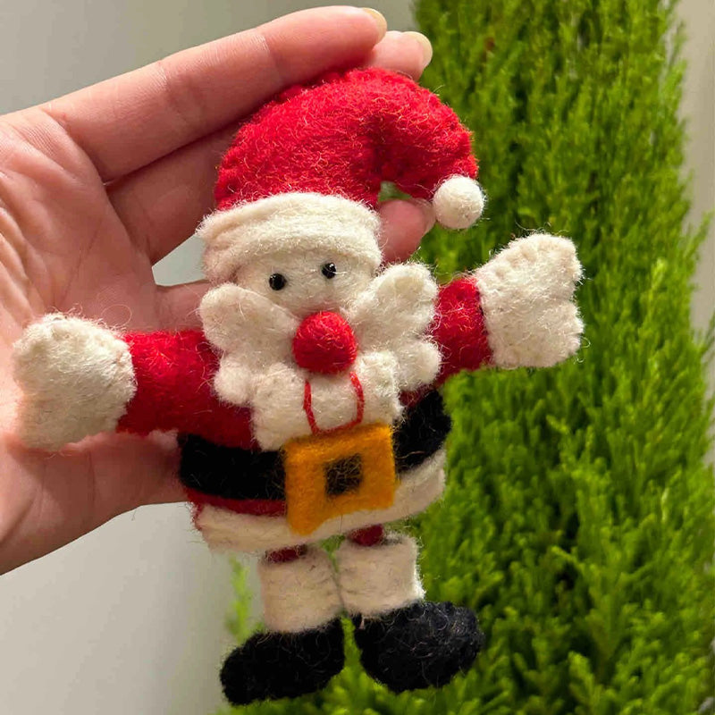 This handmade Santa Claus felted wool bag charm is meticulously crafted from high-quality wool, offering a soft texture and exquisite details, like a little festive elf. It's red hat and adorable round nose exude playful charm, while the warm wool texture evokes cosy winter memories. Compact yet durable, it’s like carrying a little piece of Christmas magic wherever you go.
